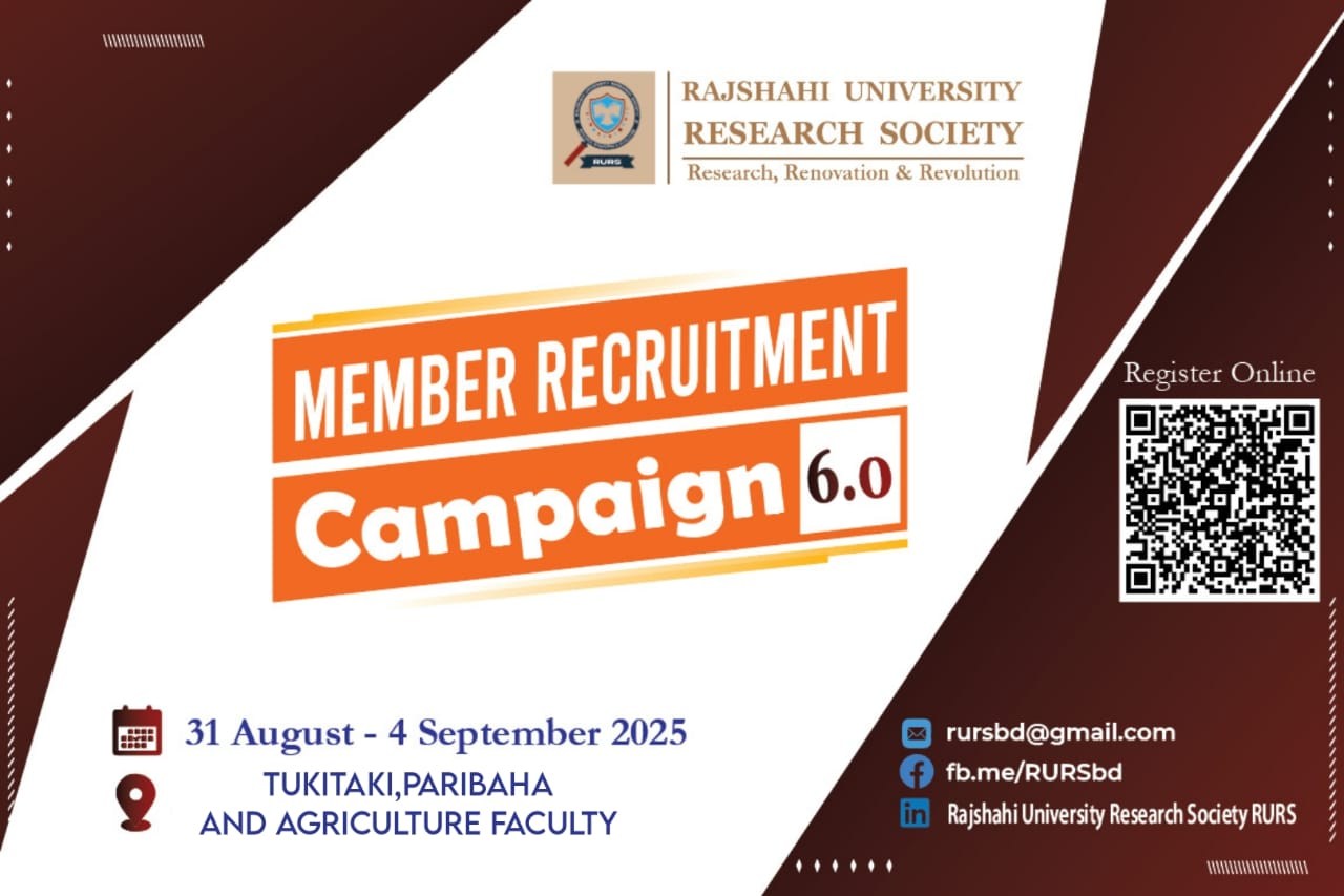 Rajshahi University Research Society (RURS) was established with the noble objective of cultivating a research-centric environment conducive to the growth and development of students at the esteemed University of Rajshahi. Since its inception, RURS has been guided by three fundamental principles: Research, Renovation, and Revolution. These principles underscore our commitment to providing comprehensive guidance and support to students, thereby fostering a culture of multidisciplinary research.