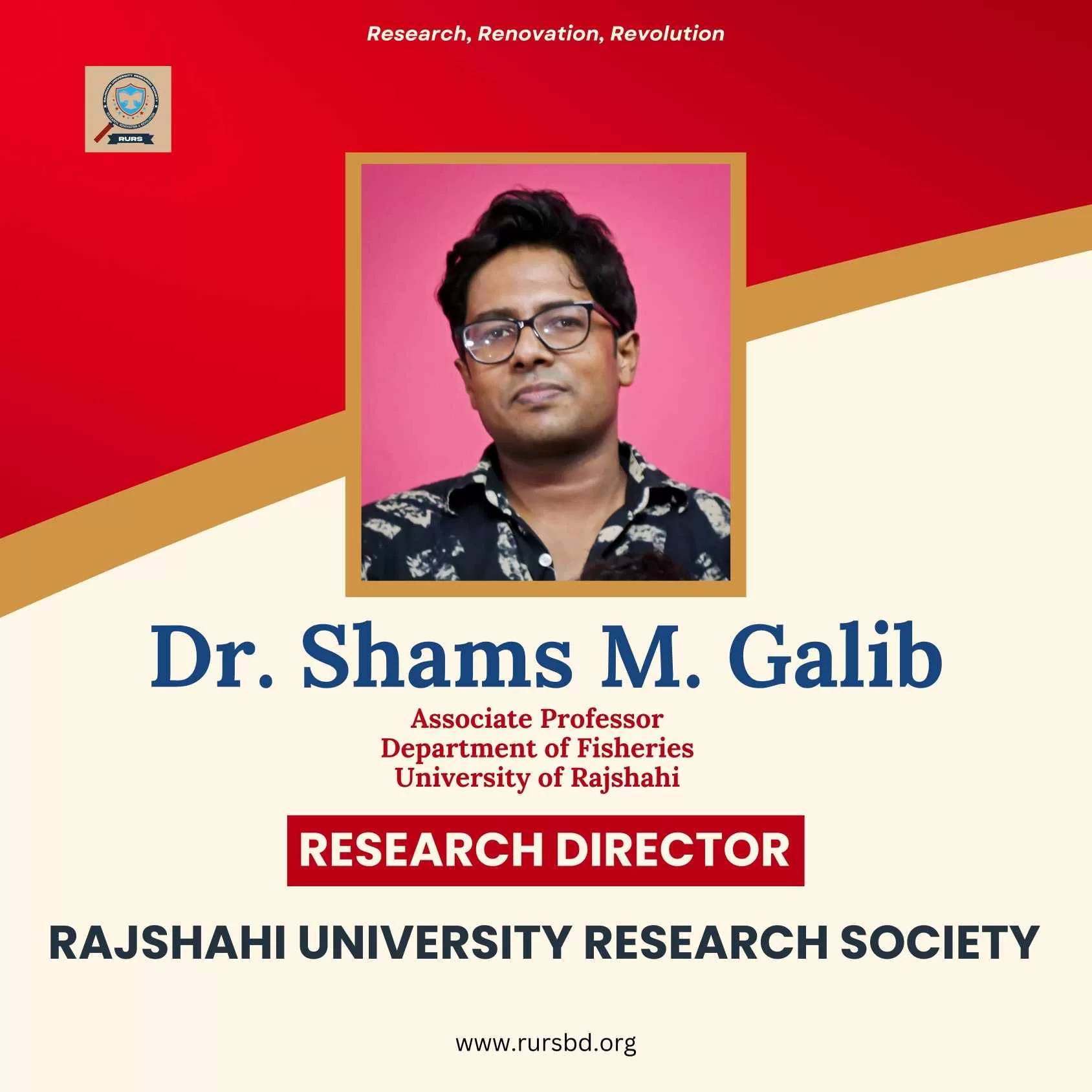 We are thrilled to share the exciting news that Dr. Shams Galib, graciously accepted our invitation to become the Research Director of the Rajshahi University Research Society. We couldn’t be more delighted to have such a distinguished individual join our team.